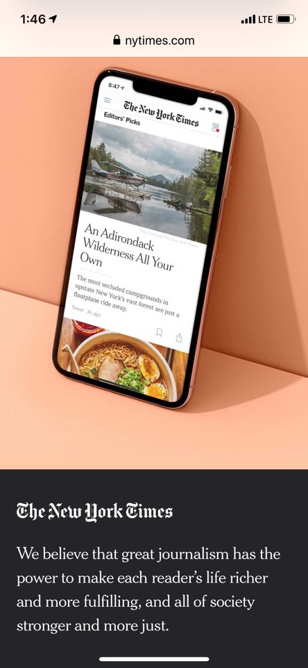 "우리는 휼륭한 저널리즘이 독자의 삶을 더 풍요롭게 하고, 더 성취감을 갖게 하며, 모든 사회를 더 강하고 더 공정하게 이끄는 힘을 가지고 있다고 믿는다." <뉴욕타임스> 유료 가입 페이지에 나오는 글이다.