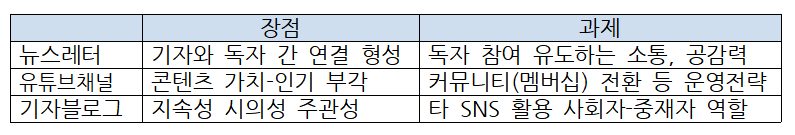 기자역할입니다. 기자들이 뉴스구독을 한 이용자와 소통을 늘리고 커뮤니티 활동으로 관계개선을 높여야 합니다. 자사 콘텐츠에 대한 마케터로서, 소통자로서 적극적인 노력을 기울여야 합니다. 유료화 성공가능성에서 대중성 성실성 저명성 갖춘 스티기자의 지분이 적지 않습니다.