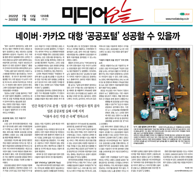 셋째, 한국언론진흥재단은 7월 11일 '디지털 뉴스 유통 구조 개선 방안' 세미나를 열고 '언론사 공동 뉴스 포털' 가능성과 관련 중간 연구 결과를 발표했다. 이에 앞서 재단은 지난해 말 '언론사 공동 뉴스 포털' 사업을 논의하는 포럼을 구성했다. 그간 공동 뉴스포털 논의는 언론사 간 이해관계를 일치시키지 못했고, 언론사의 준비가 부족했기에 '꿈'으로 그쳤다.
