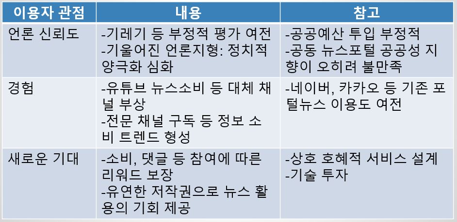 적어도 개별 언론사와 독자 간 연결과 관계 증진의 프로젝트를 선행하거나 병행할 때 공동 뉴스포털의 가능성이 커질 수 있을 것이다.