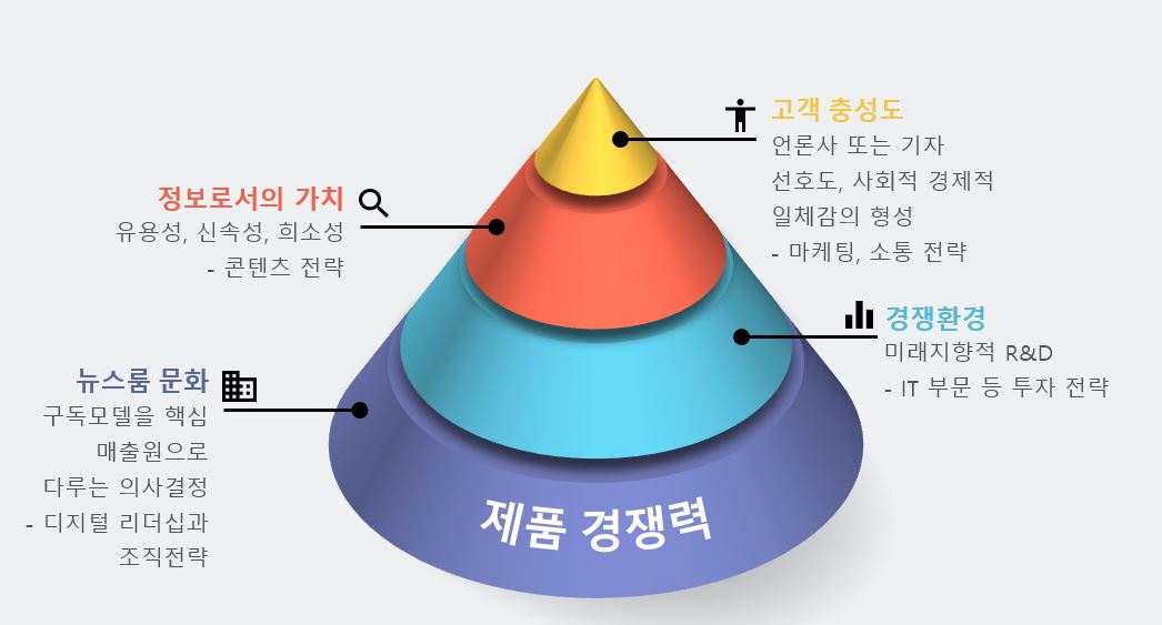 구독모델은 제품과 신뢰의 결합이다. 구독모델을 시작하면 제품을 만드는 조직 이외에도 마케팅, 기술, 데이터 조직의 역할이 크다. 얼마나 유기적으로 협력할 수 있는지가 관건이다. 디지털 구독모델은 종이신문 시대를 마감하는 전환의 신호다. 단순한 하나의 프로젝트가 아니다. 탈포털 등 국내 디지털 뉴스 시장의 해묵은 과제도 있지만 언론산업 전반의 전환점으로 다뤄야 한다. 일관성, 지속가능성, 투명성을 확립하는 조직과 리더의 역할이 그 어느 때보다 절실하다.