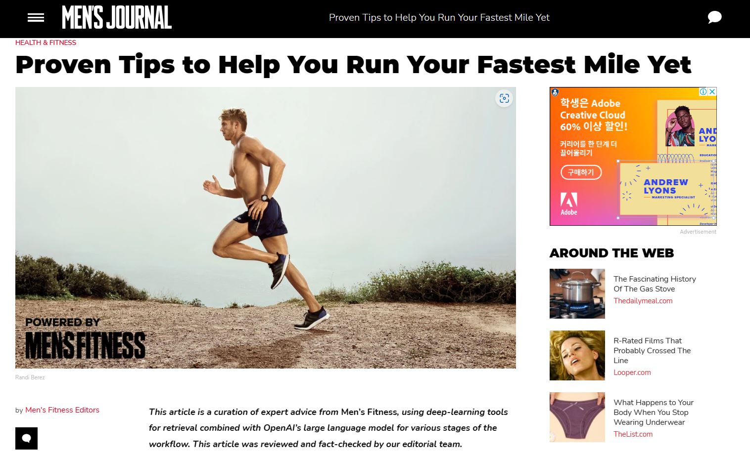 이 기사는 기사 상단에 “오픈AI의 초대형 언어모델과 결합된 딥러닝 도구를 사용했다”고 밝혔고, ‘맨스 피트니스 편집자(Men’s Fitness Editors)’라는 바이라인을 표기했다. 다만 아레나그룹은 “AI가 기자들을 대체하는 것은 아니고 콘텐츠 생산 단계 개선, 비디오 제작이나 후원 콘텐츠, 마케팅 캠페인 등에 활용하는 것이 목표다”라고 선을 그었다.