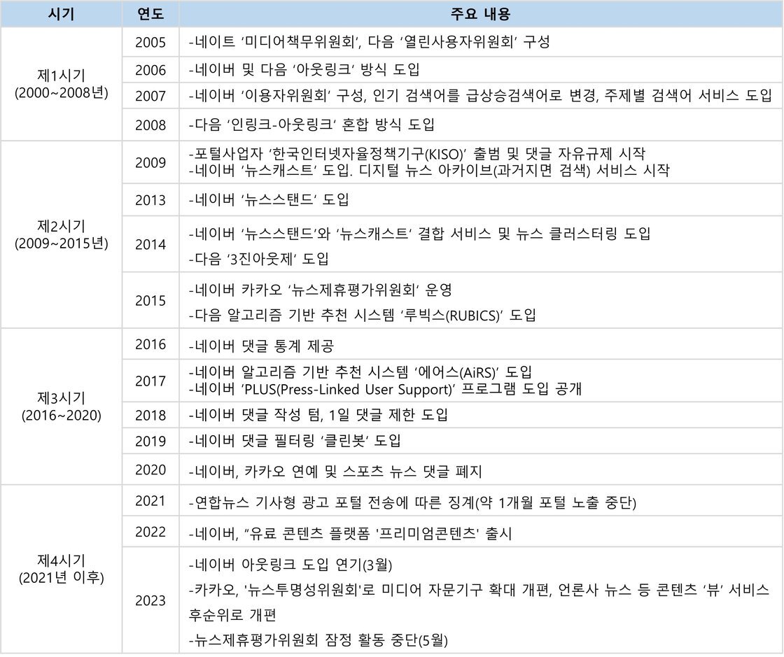 - 김위근, 황용석(2017), 한국언론과 포털 뉴스서비스, 포털 뉴스서비스 관련 자율규제 변천(표2-3) 재구성
