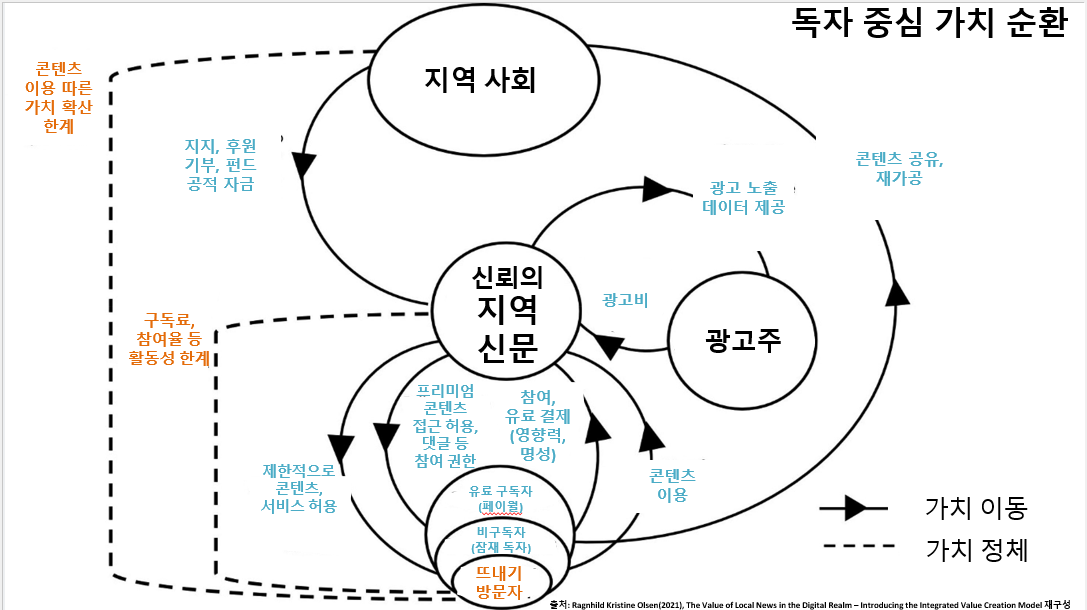 지역 언론은 뉴스 조직에 갇혀 있을 것이 아니라 지역 독자에게 밀도 있게 다가서야 합니다. 의미 있는 지역 콘텐츠와 서비스를 배경으로 독자층을 넓히는 것은 물론 디지털을 활용해 독자의 목소리를 담고 독자의 영향력을 넓히는 방향으로 조직과 서비스를 설계해야 합니다. 독자 중심 전략이죠.