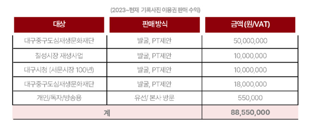 주목할 것은 비즈니스 실현이다. 현재 과거 사진 아카이브는 다양한 사업으로 확장하고 있다. 기록물을 모아 서적으로 출간한다거나 지자체와 각급 기관에 전시, 출판 기획을 제안하는 것이다. 기록 사진 발굴과 스토리 설게로 또다른 관심층을 찾는 셈이다.