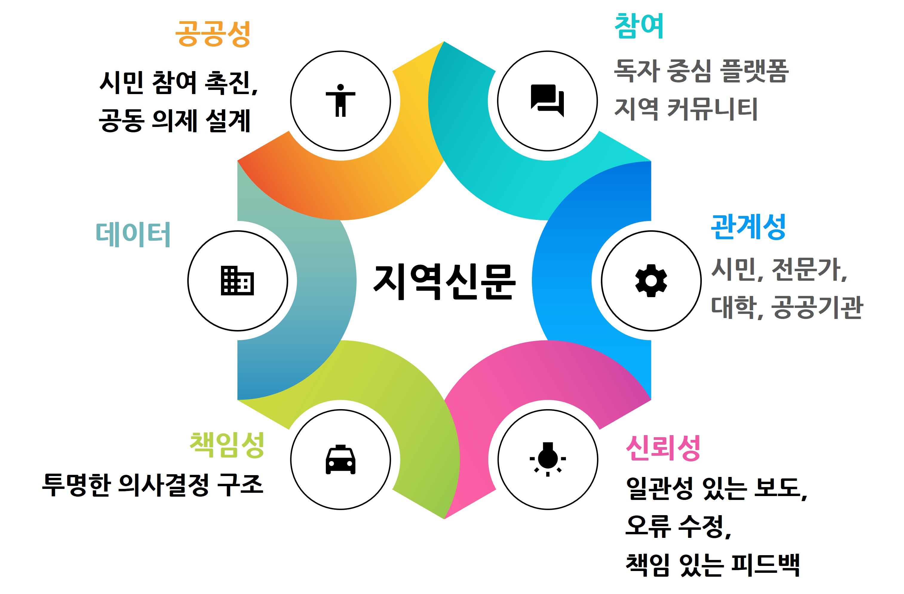 지역민이 자신이 사는 곳의 문제를 데이터·스토리·토론으로 함께 풀 수 있는 참여형 플랫폼을 설계해야 한다. 즉, 지역신문은 ‘뉴스 판매’가 아니라 공공서비스 비즈니스 모델로 전환해야 한다.